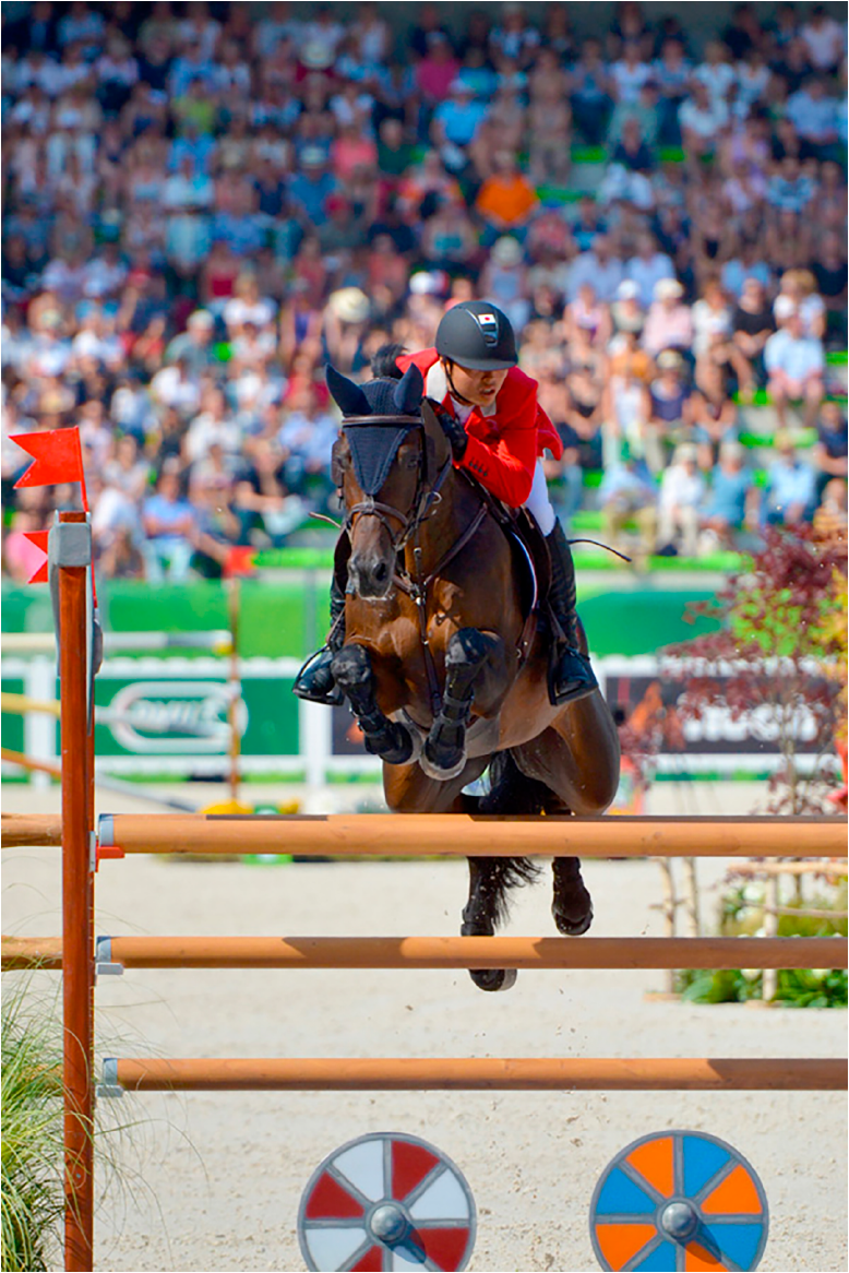 より早くゴールするためのコース取りや飛び越すタイミングを選手が素早く的確に判断し、その判断に馬が瞬時に反応できるかどうかがポイントです。 オリンピックなどの世界最高レベルの競技会の障害物では、高さ160cm、幅(奥行)2mを超えるものもあります。