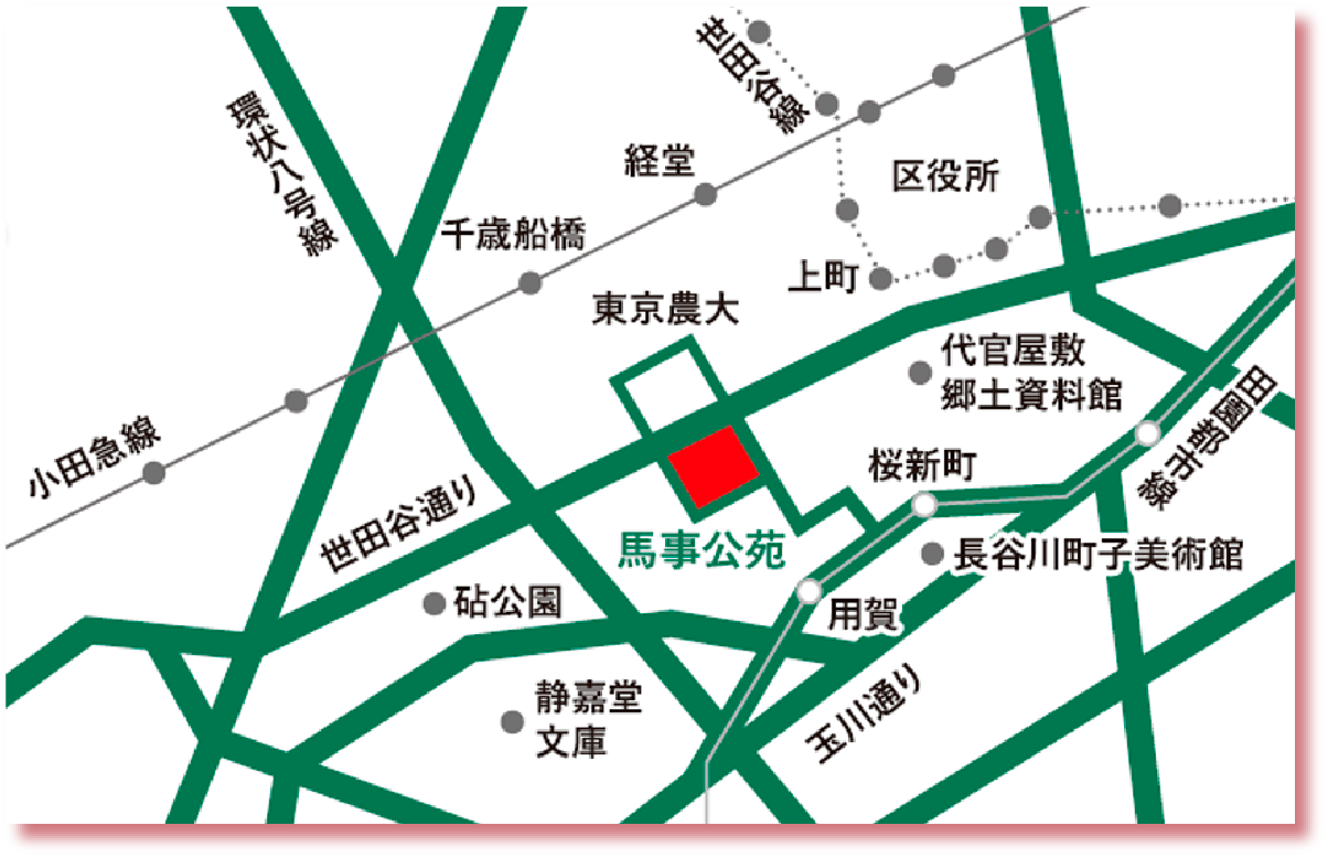 ※JRA馬事公苑には、お客様専用駐車場がございません。ご来苑の際は公共交通機関をご利用ください。周辺道路への違法駐車はご遠慮願います。
